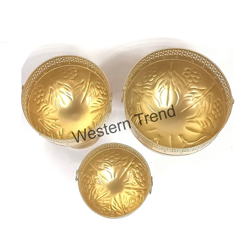 A touch of royalty for your event decor! This exquisite set of gold-finished urlis, adorned with intricate floral patterns, brings elegance and grandeur to any setup. Whether used for floral arrangements, candles, or traditional rituals, these urlis create a statement of sophistication. Perfect for weddings, poojas, and festive celebrationsA statement of grandeur and sophisticated taste Gangalam vase with handles is the perfect addition to any home decor. The golden Vase gives it a luxurious look and feel. Ideal for displaying flowers or simply as a standalone decorative piece, this planter will impress guests and elevate the ambiance of any room, Entrance & Wedding Decoration.