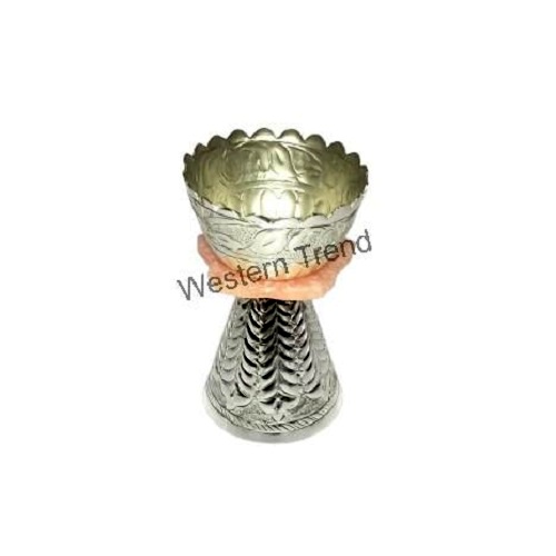 Our exquisite Emerald Pink Lotus Diya Stand is a symbol of purity, divinity, and enlightenment. This meticulously crafted Diya is not only a source of radiant light but also a stunning piece of art that will enhance the beauty of your sacred space. The Emerald Pink Lotus Diya Stand is designed to perfection, capturing the delicate beauty of the lotus flower and is made from high-quality material. This Diya is not only perfect for your own spiritual practices and ceremonies but also makes a thoughtful gift for loved ones on special occasions such as weddings, housewarmings, or festivals, Diwali.This bowl creates an aura of grandness. The silver plated bowl comes with a pillar stand with a rose quartz accent in middle. It is beautiful and a stand-alone piece. The use of natural stone with metal stand a great finish. It can also be considered as a perfect housewarming gift for your loved ones.Introducing Silver Metal Diya Lamp made of the Premium Material. This exquisite piece of craftsmanship comes from our Metallic Enchantment collection.
