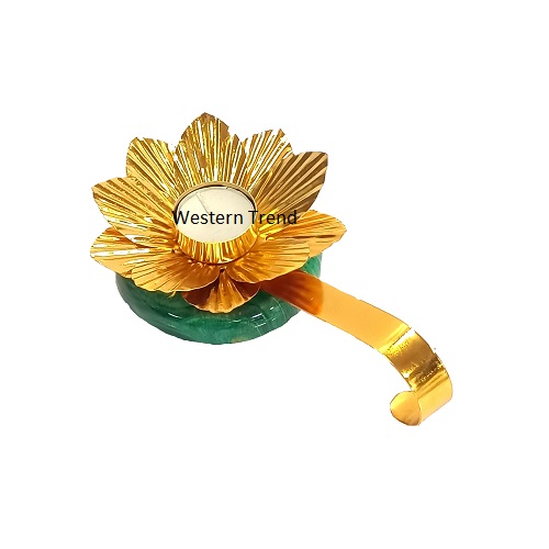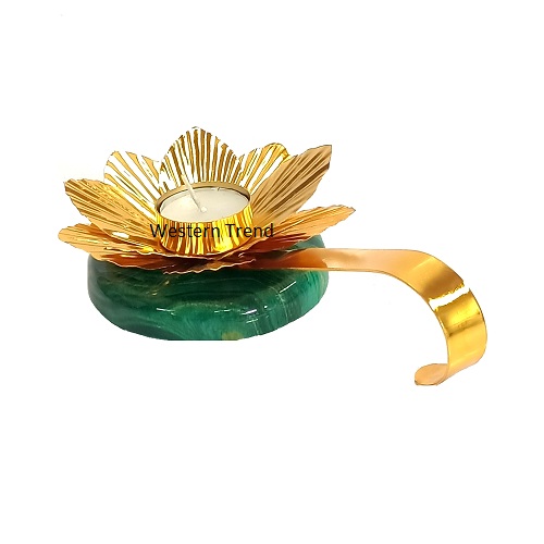 of your home with the elegant Lotus Diya with Handle & Green Resin Base