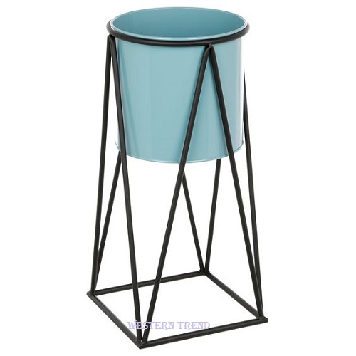 Decent metal planters for table top home décor, bedroom décor, its make by beautiful design, pots colored sky blue with metal black stand, its perfect for plant décor, flowers, balcony, metal planters for garden décor, planters for nursery plant, event décor planters.