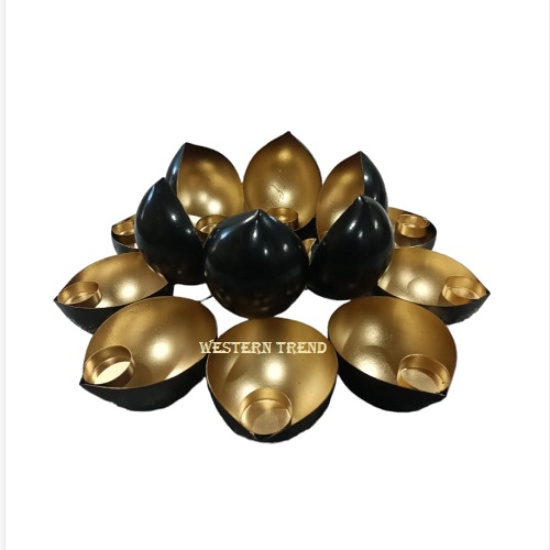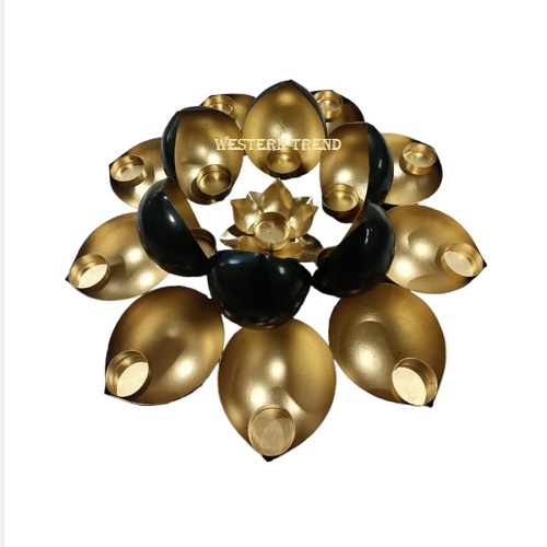 Decorative Metal Chirag Urli With Black and Gold Finish Combination, Urli For Floating Flower and Candle T-Light, Use For Home Decoration, Wedding Décor Products, Festival Décor Products, Handicrafts Urli, Metal Urli, Table Top Products, Floral Products, Diwali Special Products, Candle Light Décor, Urli For Entrance Décor.