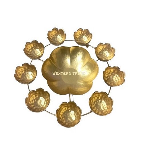 Evergreen Lotus Diya Urli, With Golden Mirgan Finish Combination, Iron Urli, Emboss Design Urli For Floating Flower and Candle T-Light, Use For Home Decoration, Wedding Décor Products, Festival Décor Products, Handicrafts Urli, Metal Urli, Table Top Products, Floral Products, Diwali Special Products, Urli For Gifting, Gifts Item, Unique Products, Candle Light Décor, Urli For Entrance Décor, Made By Western Trend.