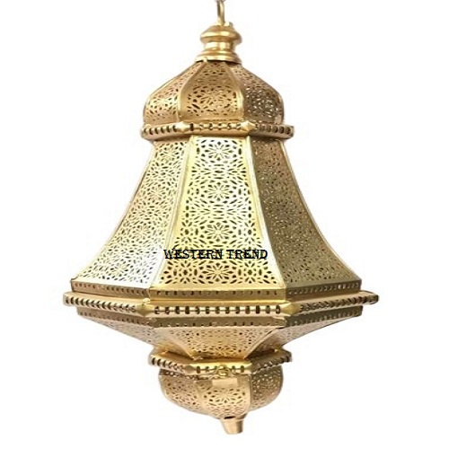 Moroccan cutwork design: The medieval silhouette of our Moroccan Ceiling Lamp evokes a magical mood. Finished in Gold from the outside and inside which glows when lit, this metal ceiling lamp immediately adds character to any room.