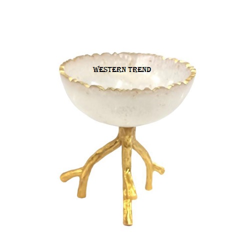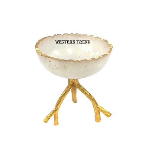 Dry Fruit Resin Serving Bowl On Metal Stand