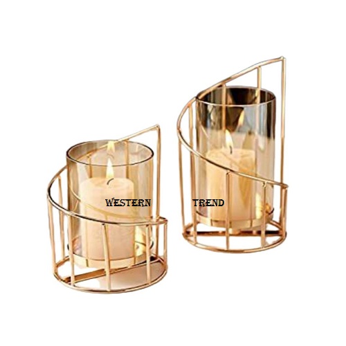 Latest metal wire candle holder with inside clear glass, with designer shape that increase the candle t-light, with gold electroplated finish, mostly use for home décor, hotels, office, bar, restaurant, on occasion, wedding, wedding gifts, celebration, festival, gifts, hamper gifts, birthdays gifts, hampers, its a best choice for create a décor room.