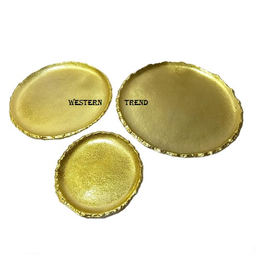 Entrance your guests with your one-of-a-kind style. Present round metal Gold Serving Platter, its elegant shape with textured edge, from serving drink to displaying collection, this attractive tray make a welcome addition, decorative metal serving platter, kitchenware products, tabletop products, serving products.