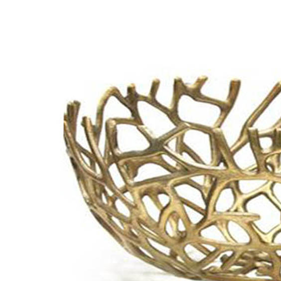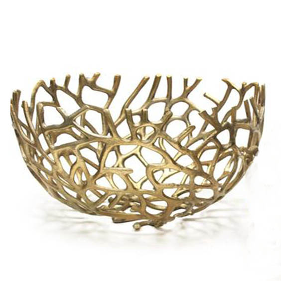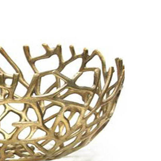 Aluminum decorative Bowls set of 2 add a luxe touch to any counter or tabletop, They are made of aluminum and feature an organic branch like open design, These bowls offering plenty of room for fruits and flower and display them empty, allowing their distinctive look to shine, these bowls complete the look in any contemporary or glam setting, finish gold EPL , Industrial Style Metal Bowl with Intricate Mesh Design, Crafted completely from Aluminum for long durability, These Bowls when placed your table, dinning table will add enchanting charm to your existing decor, Metal Serving Platter, Latest designer Platters, Serving dishes, rough cast metal serving fruits bowl,decorative metal fruits bowl for Modern day twigs round metal fruits Bowl with Gold Finish Designed By Western Trend.