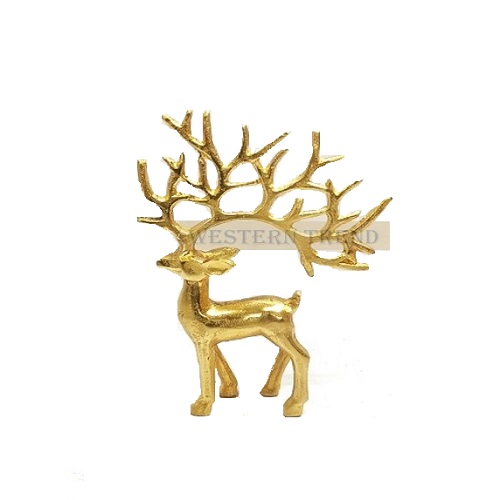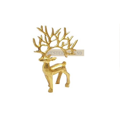 A Beautiful Aluminum Reindeer with a Shiny Gold EPL finish, these Cast-aluminum Reindeer have a beautiful Figure with gold finish that makes them truly stand out. This products creates an eye-catching Christmas display indoors or outside, with gracefully flowing antlers and vibrant finish, Bring life to your holiday landscape with the majestic presence of our golden Cast-aluminum Deer. Beauty, spirit and energy that only an animate creature can provide – and perfectly fit for the season. A blend of lifelike and slightly stylized design elements elevates each to a work of art that's sure to get noticed. Gracefully flowing antlers are prominent on both, and each strikes it own expressive pose, Latest Metal Reindeer For Christmas Decoration, Its A perfect Products for gifting, Show piece, Made By Western Trend.