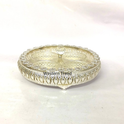 Spacious German Silver Round Box, The Decorative Storage Container functionality with elegance, Latest German Silver Collection, Pure Silver Collection, Metal Candy Box, German Silver Candy Box For Serving Your Guests, This Elegant Center Pieces Box with a glass lid, its perfect for serving candy, chocolate, dry fruits, and dates while Welcoming your guests, Authentic German Silver Dry Fruits Serving Box have an Eye Catching Charm as a decorative for your kitchen, living room, bedroom, office, restaurant, and hotels, Also the German Silver Candy Box is a memorable gifts for any Festival, Occasion, Diwali Gifts, Eid Gift, Ramazan Gift, Housewarming, Hamper Gifts, Corporate Gifts, Wedding Gifts, Return Gifts, Latest Designer Gifts Box, Metal Dry fruits gifts box, This Pure Silver Metal Sweet Box are made of high quality material, the bright Silver Finish of the metal sweet box will keep on being bright for long time, This Latest German Silver Box Design by Western Trend.