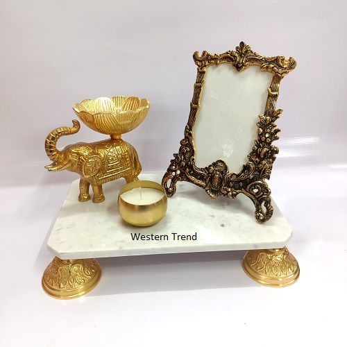 Decorative Marble Chowki Combo Set with Golden Elephant & Golden Antique Photo Frame and Candle T-Light, Marble Chowki Combo Set with Golden Collection, Metal Candle T-Light For Lighting Decor, Hamper Gifts Set, Combo Set, Pooja Décor Products, Wedding Décor, Home Décor Products, Handicrafts Décor Products, Metal Décor Art, Metal Elephant For Gifting, Wedding Gifts, Corporate Gifts, Latest Gifts, Diwali Special Gifts, Festival Collection, Latest Collection, Diwali Hamper Gifts, Anniversary Gifts, Cultural Gifts, Photo Frame, Corporate Gifts, Latest Gifts, Trending Gifts, Entrance Gifts, Event Gifts, Gifts for Living room, Center Pieces, Photo Frame For Wedding Picture, Antique Collection, Metal Photo Frame For Wedding, Marble Decor Collection, Marble Products, Festival Gifts, Designed BY Western Trend