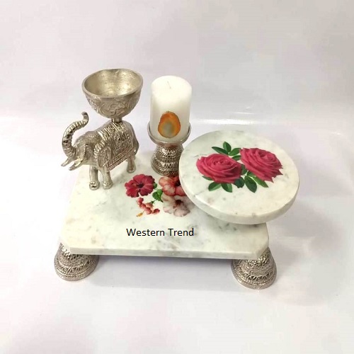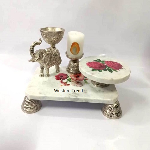 Silver Elephant & Marble Cake Stand and Candle, Marble Chowki