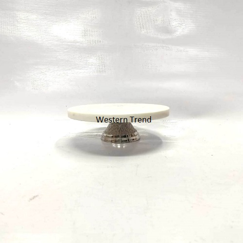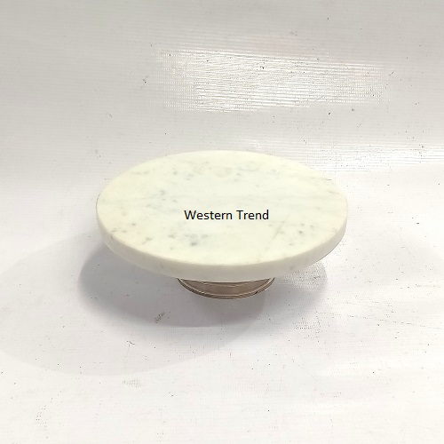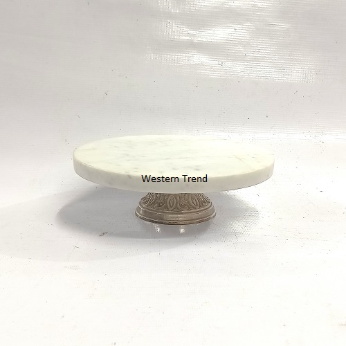 White Marble Cake Stand With Metal Base With Silver Finish