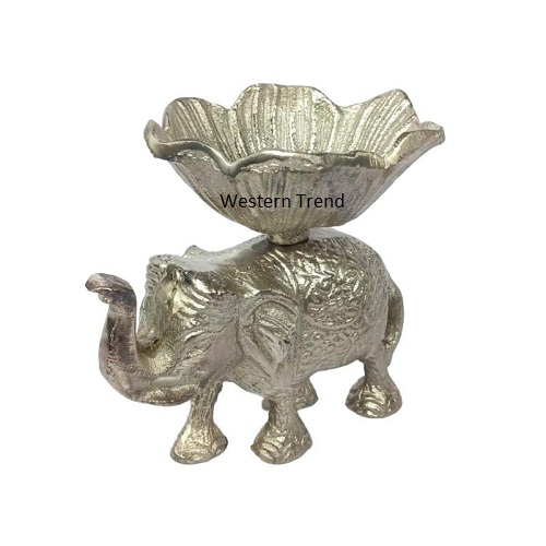The Elephant is a symbol of wisdom and strength, its a cultural products, Decorative Elephant With Bowl Use for dry fruit, serving, and gifting, This Elephant is a made of high quality Aluminum Metal with beautiful emboss work, Aluminum Elephant with bowl With Silver Finish With Premium Quality, Table top products, showpiece, gifted item, decorative products, handicrafts products, Diwali decoration, table top products, Metal Elephant Statue For Home, Office Table & Gifts Articles, Animal Showpieces Figures, White Metal Elephant, its a best products for gifting, for Marriage Anniversary, wedding return gifts, Birthday gifts, house warming gifts, office /shop inauguration, Corporate gifts, Festival Gifts, Diwali Gifts, Wedding Gifts, This Decorative Articles can be used as Pooja Mandir, Interior Decoration, Designed By Western Trend.