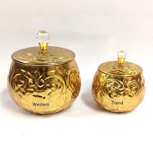 Emboss Carving Work Eye Caching Design Of The Jars With EPL Gold Finish Will