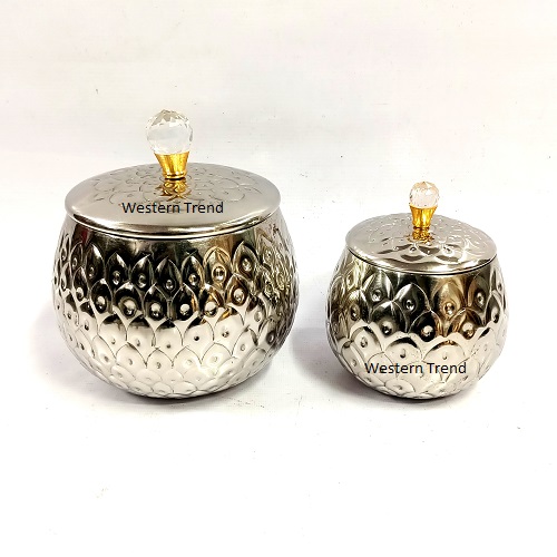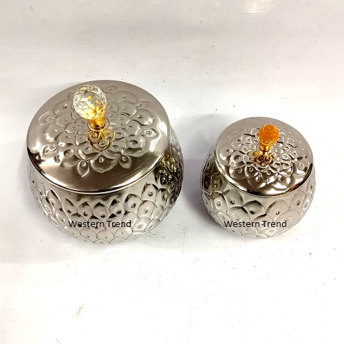 Fancy Place Silver Metal Handy With Crystal Knob Elegant Iron Storage For Dry Fruits &