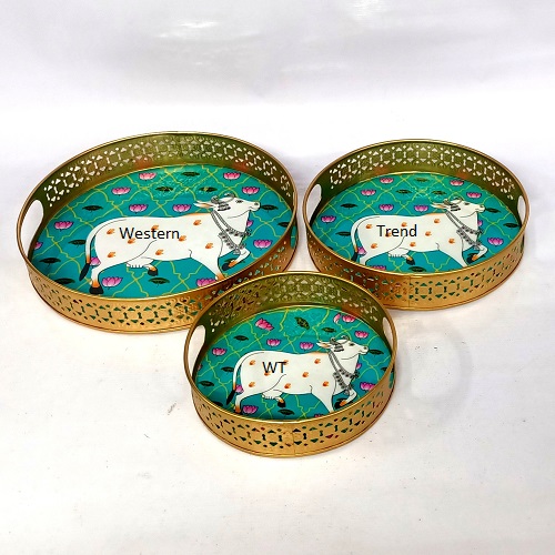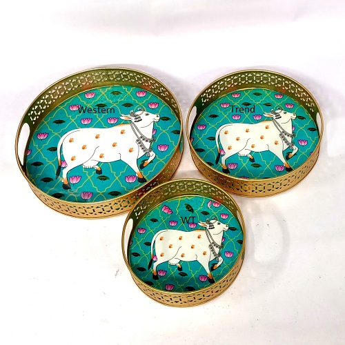 Sticker, This Elegant Set Of 3 Pichwai Printed Trays Features