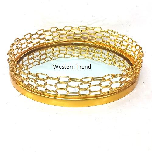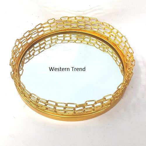 Decorative Mirror serving trays With New Chain Frame Wirth Gold