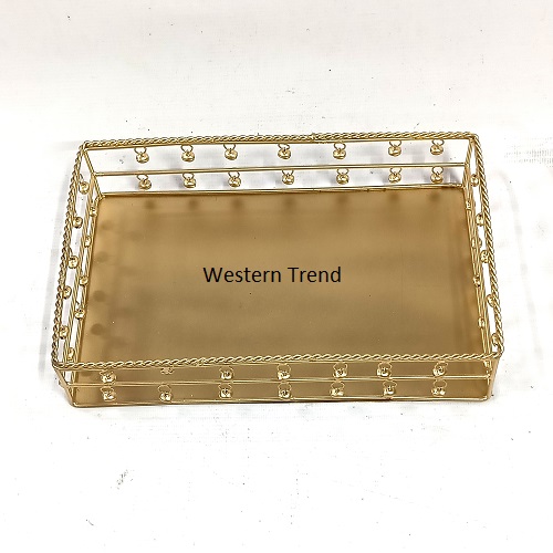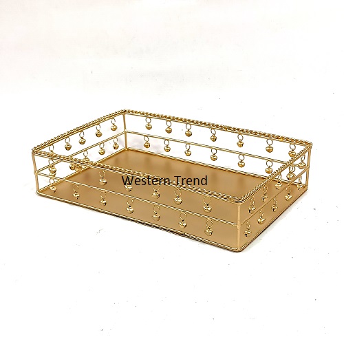 Decorative serving trays With Ghungru With Gold Finish, it’s a perfect for serving appetizers, desserts, cocktails, and other refreshments during formal or informal gatherings. The reflective surface adds an elegant touch to any event. Displaying decorative items: You can use serving trays to display decorative items such as candles, flowers, figurines, or other trinkets. The reflective surface of the tray helps to highlight the items and make them stand out. Organizing and displaying cosmetics: Designer serving trays can also be used to organize and display cosmetics or other beauty products. They can be placed on a vanity or dressing table and used to store makeup brushes, perfumes, and other items creating a centerpiece: Decorative serving trays can be used as the base for a centerpiece.