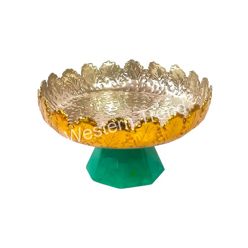 Elevate Your Gifting with silver plated bowl with a Green resin base lends an ethereal elegance to dining as you use it to serve exotic fruits or sweets. This product will be exclusively handcrafted for you, making the colour/texture/pattern slightly vary from the image shown, due to multiple artisan-led techniques and processes involved, Enhance your home decor with the stylish and versatile Green Base Bowl. This bowl features an eye-catching Resin base in a vibrant green, paired with a sleek and durable aluminum bowl on top. Whether used for serving dry snacks, holding decorative items, or simply as a standard piece, this bowl adds a touch of modern elegance to any space. The combination of the smooth pink base and the metallic sheen of the aluminum bowl makes it a perfect accent for contemporary and traditional interiors alike