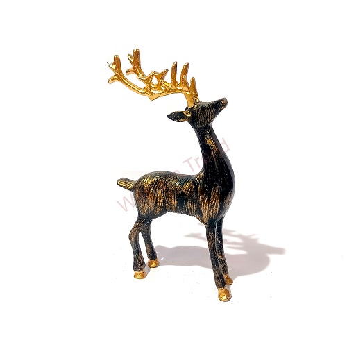 Decorative Metal Reindeer Statue With Black & Gold Finish