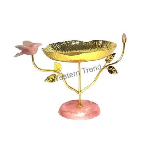 The symbol of purity and elegance. Leaf or rose quartz stone bases with Gold-plated. Elegant yet practical steps of serving. Variation in stones makes each bowl exclusive. An ideal pick for nuts, candies, and small treats, Cake, Chocolate, Fruits, and Dry Fruits Add a touch of natural elegance to your home decor