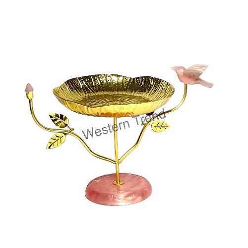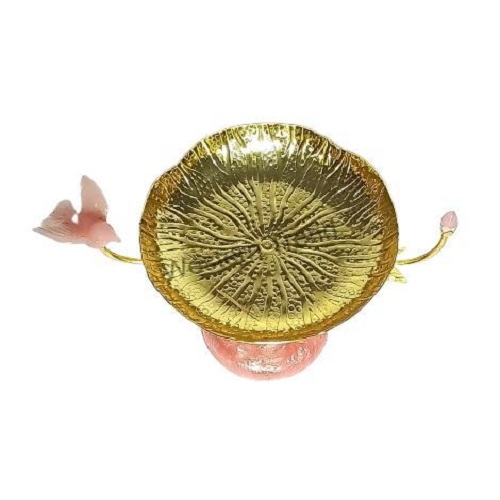 This unique Lotus Leaf Platter with bird is a stunning addition to any home. Handcrafted Metal with Gold plating, the intricate details of the lotus leaf and vibrant pink bird add an elegant touch. Perfect for serving or display, this platter is a beautiful blend of art and functionality,Crafted from Premium Material with Gold plated, Latest Dry fruit serving platter with resin base, Centrepiece adds an elegant touch to any room. With its intricate design and durable materials, it will remain a beautiful and sophisticated centrepiece for years to come. Elevate your decor with this timeless piece,