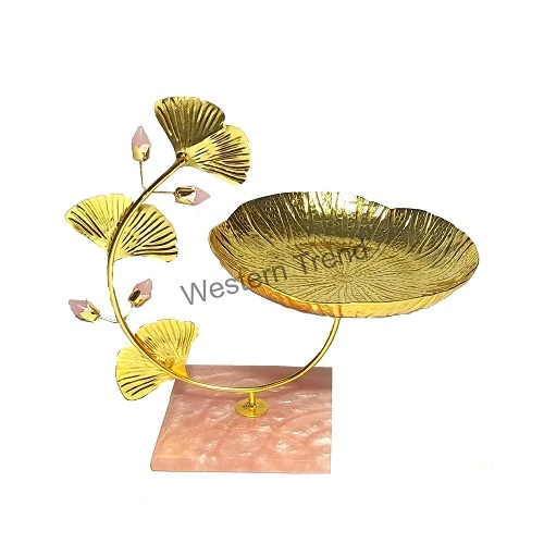 ELEGANT, CONTEMPORARY and STYLISH Lotus Leaf platters for your Dining and Centre Table at best prices, The Ideal Decor!Here's a piece that's out of the ordinary a bowl lotus leaf serving set placed on a rose quartz base. Use this for both decorative and practical purposes, or as a centrepiece for a table or as a snack dish for parties or gatherings. You can also use it to hold other small items such as candies, snacks or knick knacks, Cake, Chocolate, Fruits, and Dry Fruits.