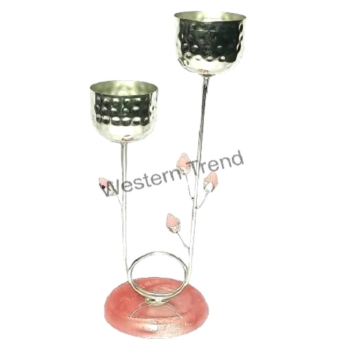 This silver-plated candle stand, adorned with soft pink buds and a pastel base, brings a graceful glow to your space—perfect for quiet evenings, festive tables, or thoughtful gifts.Indulge in the timeless elegance of this Silver Plated Luxury Candle Stand,