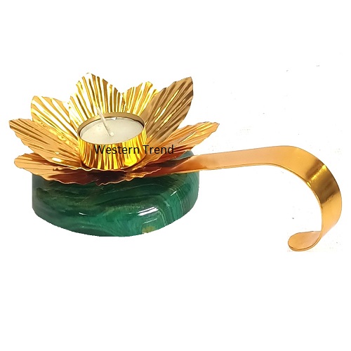 of your home with the elegant Lotus Diya with Handle & Green Resin Base