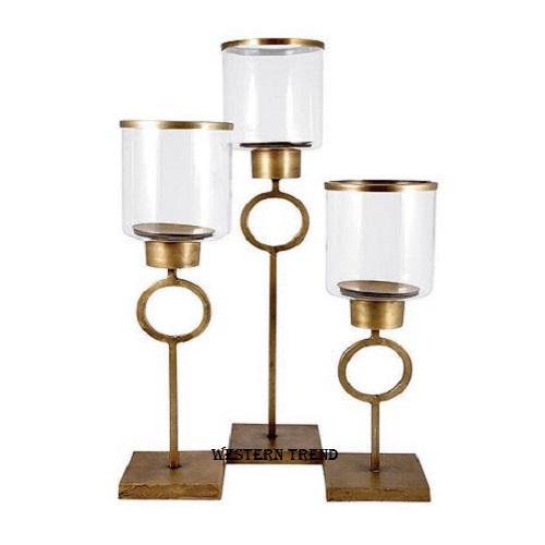 Decorative antique rustic candle pillar to decorate your room, home, hotels, restaurant, bar, interior decoration, wedding décor, wedding ceremony, lighting décor, candle light dinner, candle décor, u can see gold antique finish with clear glass holder.